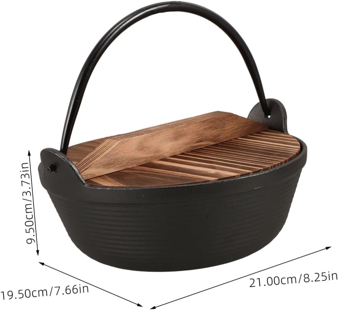Package Include 1 x hanging pot 1 x lid Features -Material:Iron -Color:Black -Size:21.00X19.50X9.50cm/8.25X7.66X3.73in -Size:18.00X18.00X3.50cm/7.07X7.07X1.38in -The pot's japanese design is not only visually appealing but also highly practical, suitable for both indoor and outdoor cooking -The hanging design of this pot makes it easy to store, saving valuable kitchen space and enhancing overall convenienceGoods DescriptionCrafted from sturdy iron, this cast iron stew pot delivers consistent heat distribution and retention, ideal for simmering hearty stews, soups, and braised dishes. The thick, uncoated surface highlights the natural flavors of your ingredients, enriching every meal. Its traditional Japanese design enhances both functionality and visual appeal, making it suitable for various cooking scenarios, from outdoor to use. The pot accommodates multiple ingredients to serve different group sizes effectively. Its hanging design offers easy, space-saving storage, adding convenience whether you're camping or cooking at home. This cast iron pot stands out versatile piece of camping cookware, designed to improve cooking efficiency and enjoyment during outdoor recreation and everyday use From BRIGHTFUFU was for blending traditional craftsmanship with outdoor practicality. Our cast iron cookware embodies durability and timeless design, enhancing cooking moments from camping trips to family dinners. We believe quality cookware enriches life’s . Cook with confidence and style with BRIGHTFUFU