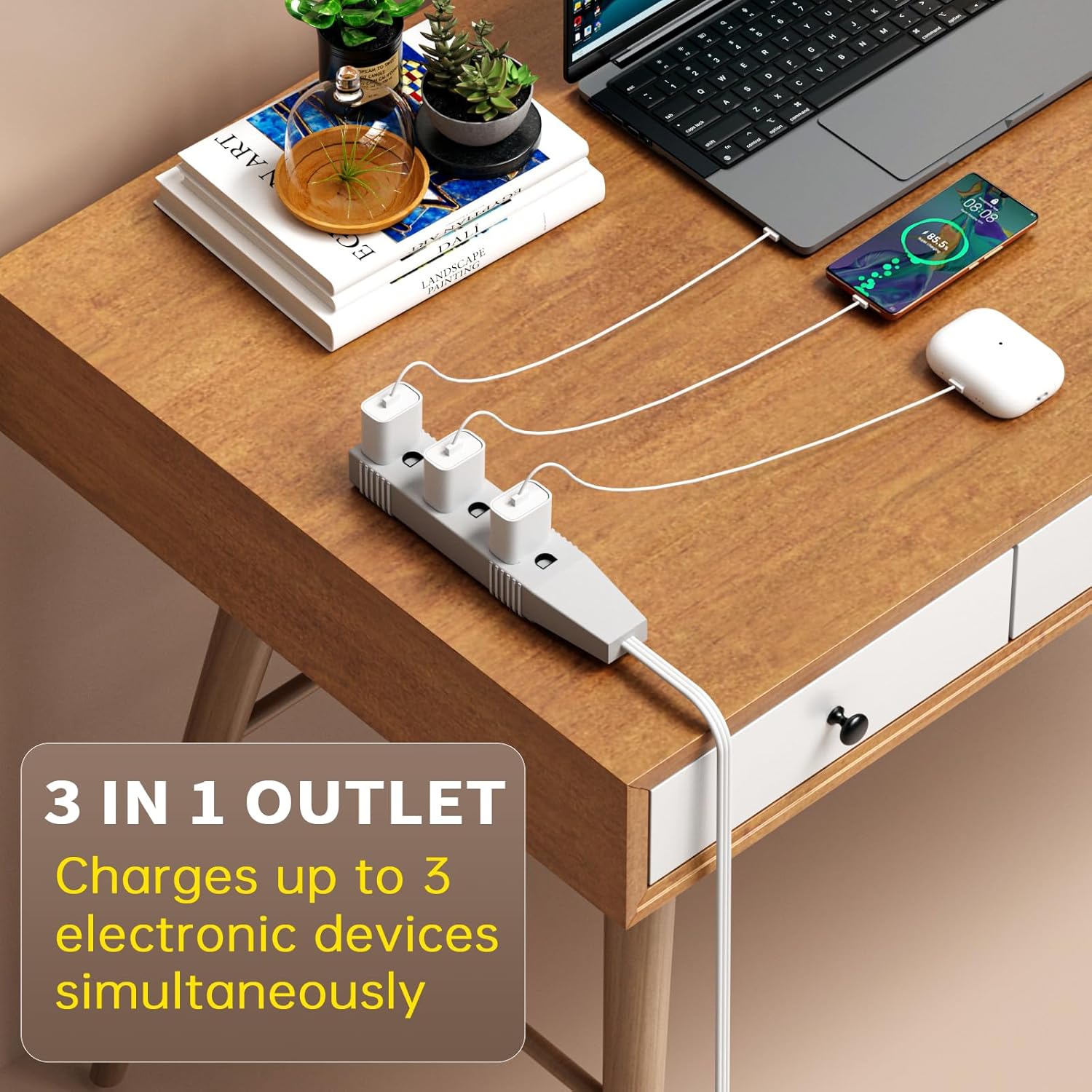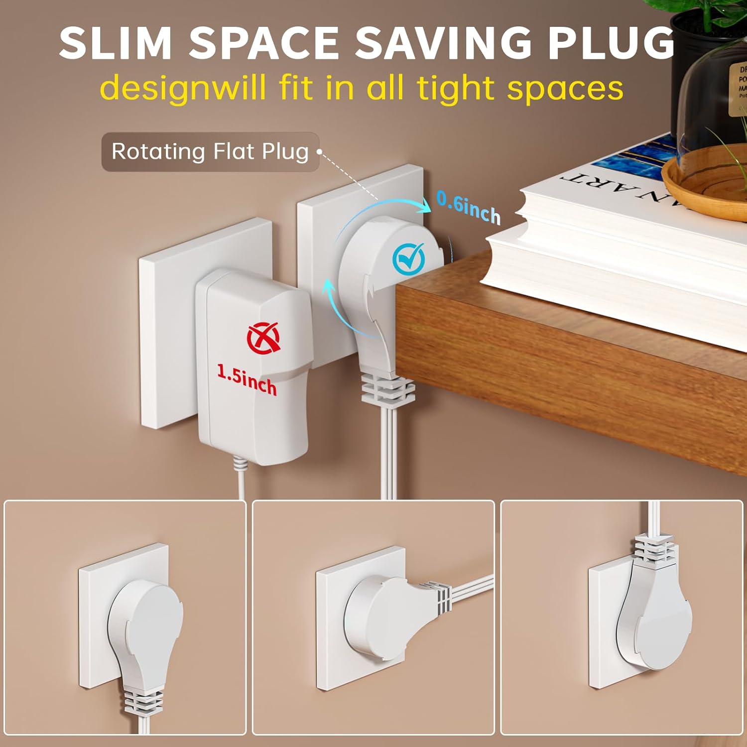 Upgrade your power solution with our premium 2 pack 20ft white flat extension cord! This innovative flat plug extension cord is designed with a 360° rotating mechanism, making it incredibly easy to plug into tight spaces and avoid obstruction—perfect for use behind beds, sofas, or in office setups. Flat white extension cord crafted from high-quality, flame-retardant PVC, it excels in resisting high temperatures and daily wear, ensuring safety and durability for long-term use. The built-in oxygen-free copper core minimizes resistance, providing a stable and efficient power flow that supports your devices without interruption.Ideal for home, office, or on-the-go scenarios, this flat outdoor extension cord features 3 outlets, perfect for powering phones, TVs, coffee makers, toasters, lamps, and holiday lights—all at once. This 3 outlet extension cord sits completely flush against walls, making it ideal for concealed placement behind furniture like sofas, nightstands, or cabinets, offering flexibility without clutter.