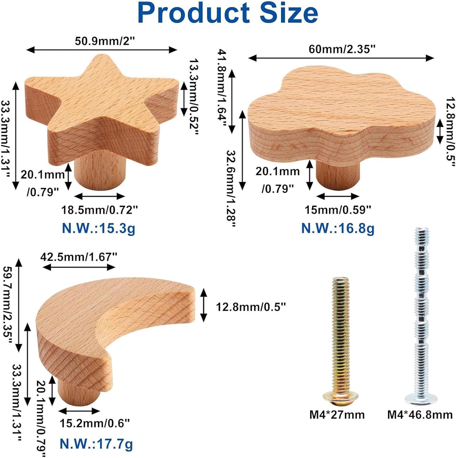 YuGtcen 6pcs Wooden Cabinet Knobs, Star and Moon Shape Drawer Pulls Nursery Dresser Knobs Woodland Wooden Knob for Crafts Handles for Furniture Cupboard Closet Door (Moon Star Cloud)