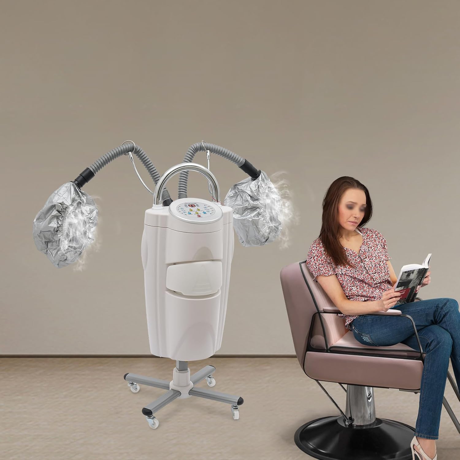 DetailsExternal Water Tank: It can store water and facilitate the generation of steam.Evaporation Cap: The evaporation cap with good sealing to ensure more uniform steam and prevent steam leakage.High-definition Screen: It can display time, making it easy for you to adjust.ApplicationIt is suitable for hair salons, spas, beauty salons, and DIY homes.SpecificationColor: WhiteStyle: ModernMaterial: Plastic, HardwareAssembly Required: YesMounting Type: Free StandingPower Source: Corded ElectricPlug Type: US StandardVoltage: 110VPower: 700WTemperature Adjustment Range: 45-70℃/113 -158℉Time Adjustment Range: 0-59minTotal Product Size(L*H): 30*82cm/11.81*32.28inPackage Size: 87*38*35cm/34.25*14.96*13.78inGross Weight: 13kg/28.66lbsNet Weight: 12.35kg/27.23lbsPackage Included1* Hair Steamer1* English Manual2* Evaporation Caps Other Accessories for Assembly