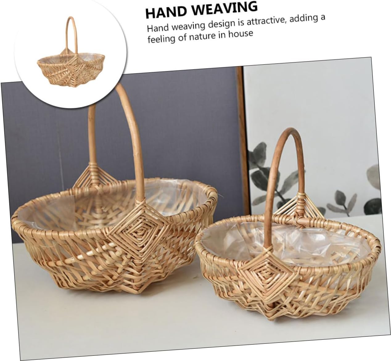 Package List 3 x Hand Basket Characteristics -Size(L): 31.00X22.00X12.50cm/12.18X8.65X4.91in Girl Supplies -Size(S): 25.50X16.00X10.00cm/10.02X6.29X3.93in Small Basket with Handle -Material: wicker Decorative Basket -Features the simple and natural appearance, which is full of the sense of beauty Hand Wicker . - hand-weaving, equipped with a handle, easy to use and Shop Basket. -Made of with fine craftsmanship, can be used longer Basket. -The whole hand-woven basket is simple and elegant, beautiful and generous Girl Wedding Basket. -Simple color and classic shape design, bringing wonderful decorative effect Decorative Wicker Basket.Goods Information Arrangement Basket This storage basket is very great for holding vegetables, fruits or some other sundries.Hand Wicker This item is a woven storage basket with fine workmanship.Wedding Basket It is well-made by , and for use.Artificial Basket for your friends or families, suitable for picnic, home and party use