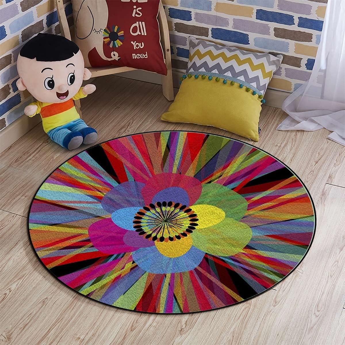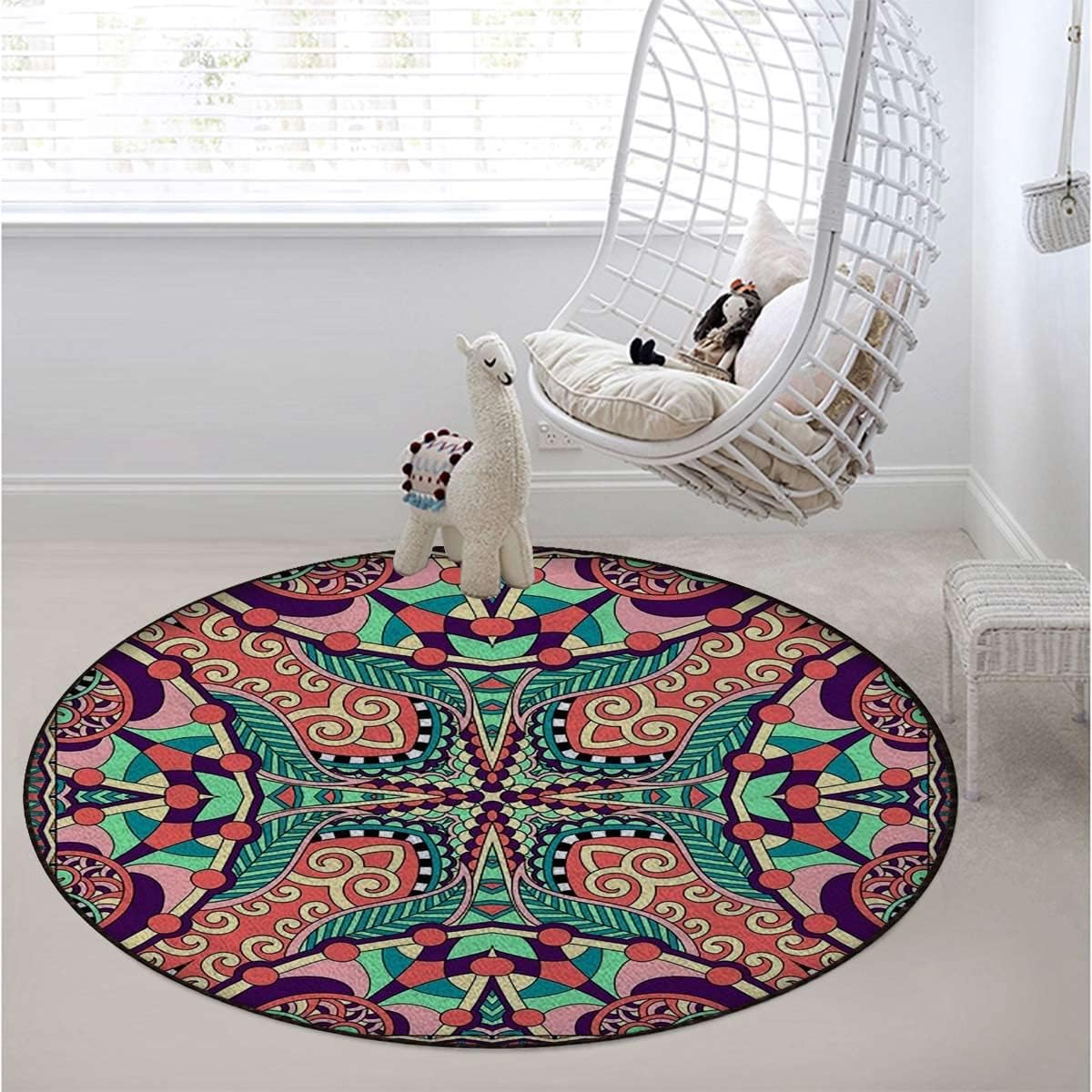Our round rug can be used in any room in the house; laundry room, living room, bedroom, kitchen, entry way, front porch, ANYWHERE! Product Information:Material:high quality and durable polyesterBottom: non-woven fabric, which is non slip.Feature: 1.Non-slip, soft and comfortable colored doormat 2.Washable or machine washable, wear-resisting, not falling down. 3.The bottom of the ground uses non-woven fabric and point plastic bottom, more anti-slip, durable.4.Professional personality DIY print design, customized personalized fashion, suitable for many occasions. Functions:1.It is Suitable for bedroom, living room, dining room, dorm room, kitchen, office, hallway, entryway, hardwood floors, wedding party, home decor, outdoor activities and more.2.Hand washable and Machine washable, easy to clean.3.This rugs will make your home more fashionable and warmth, or it will be a wonderful gift for relatives, parents and so on.Tips: In order to portable logistic transit, we will fold the mat. It may has creases when you receive the area rug. And it will recover after a few days.
