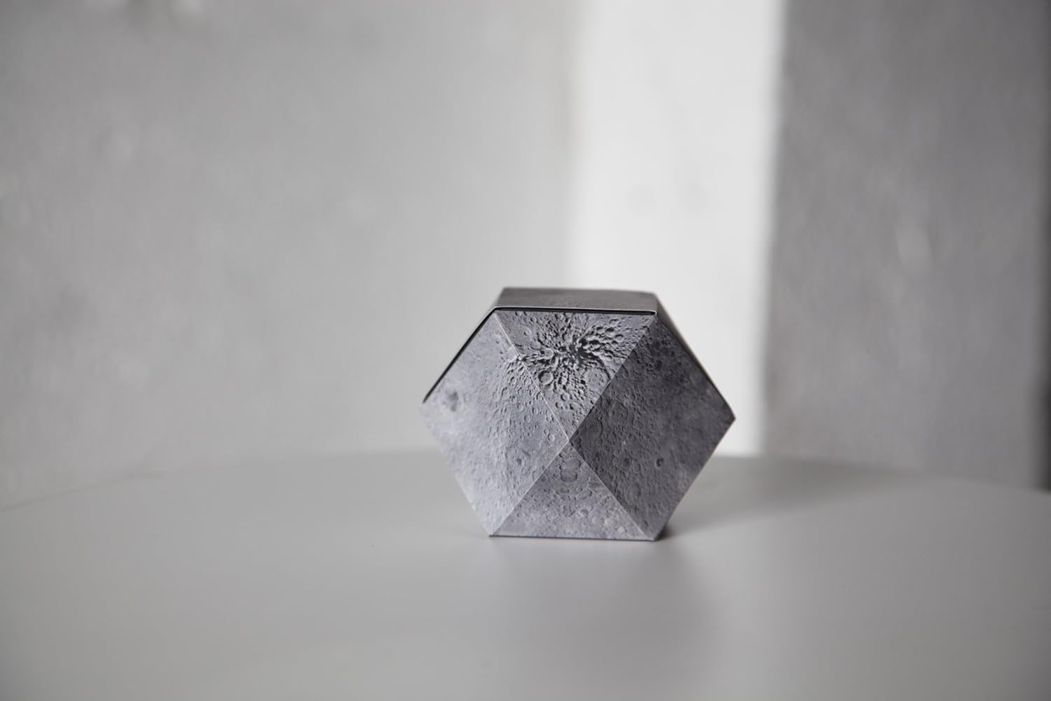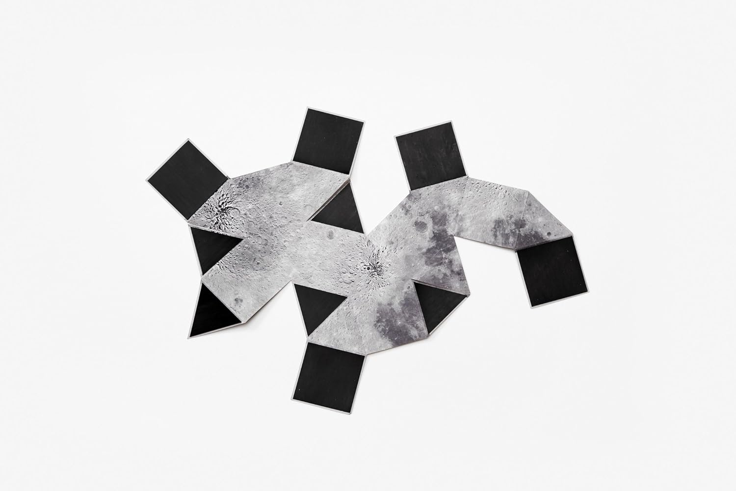 The Moon is the fifth-largest natural satellite in our Solar System and the only extraterrestrial body that has ever been visited by humankind. Its gravitational pull controls our tides, its cycles inspired our calendars and its mysteries are the center of many folktales and mythologies. Designer Brendan Ravenhill has configured the Moon into a foldable magnetic cube octahedron, a representation of Earth's only satellite that easily transitions from flat to three dimensional. Fold it to form a three dimensional moon or unfold to reveal a flattened moonscape.