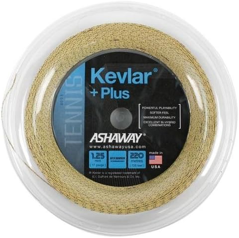 Recommended for heavy hitters and chronic string breakers, Ashaway Kevlar Plus 17G is designed to maximize durability in hybrid combinations. PTFE filaments produce a softer feel to enhance playability. Gauge: 17 (1.25 mm) Length: 720 ft (220 m) Composition: Blend of Kevlar and PTFE filaments Color: Natural For more information on strings, see our following blog posts: Breaking Down the 4 Main Types of String String and Tension Tips from Tennis Express Stringing Experts