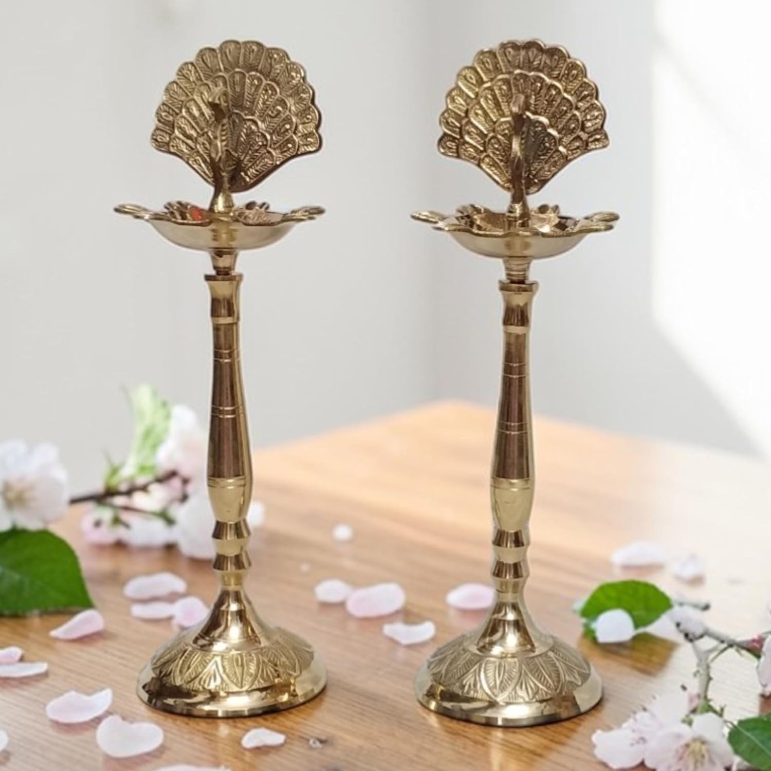 This Brass Peacock Oil Lamp (10.5 Inch, 580 Gram) is a handcrafted traditional Indian diya symbolizing purity and positivity. Made from premium brass with antique finish, it features a beautifully detailed peacock perched on top. Perfect for pooja rooms, temples, or home décor, this elegant lamp can be used with oil or ghee. Ideal as a spiritual gift for Diwali, Navratri, or housewarming ceremonies, it radiates divine light and serenity.