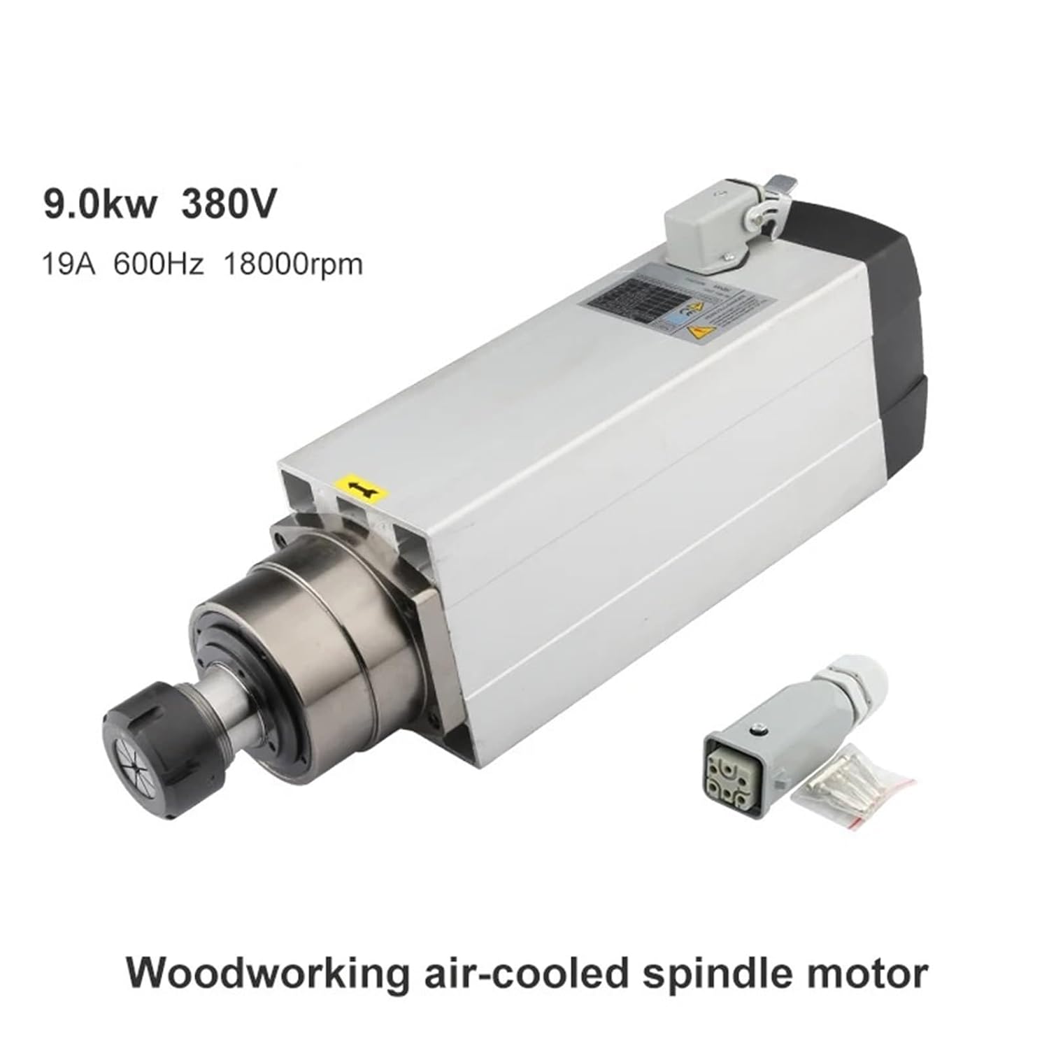 Industrial Motors==========Drive : MotorOperating Speed : 18000rpmModel Number : 9kwApplication : MillingModel Number : 9kw air-cooled Rated power : 9.0KWVoltage : 380VCurrent : 19AFrequency : 600HzCooling method : fan coolingLubrication method : Grease lubricationShaft end connection : ER32Bearing : Ceramic bearing