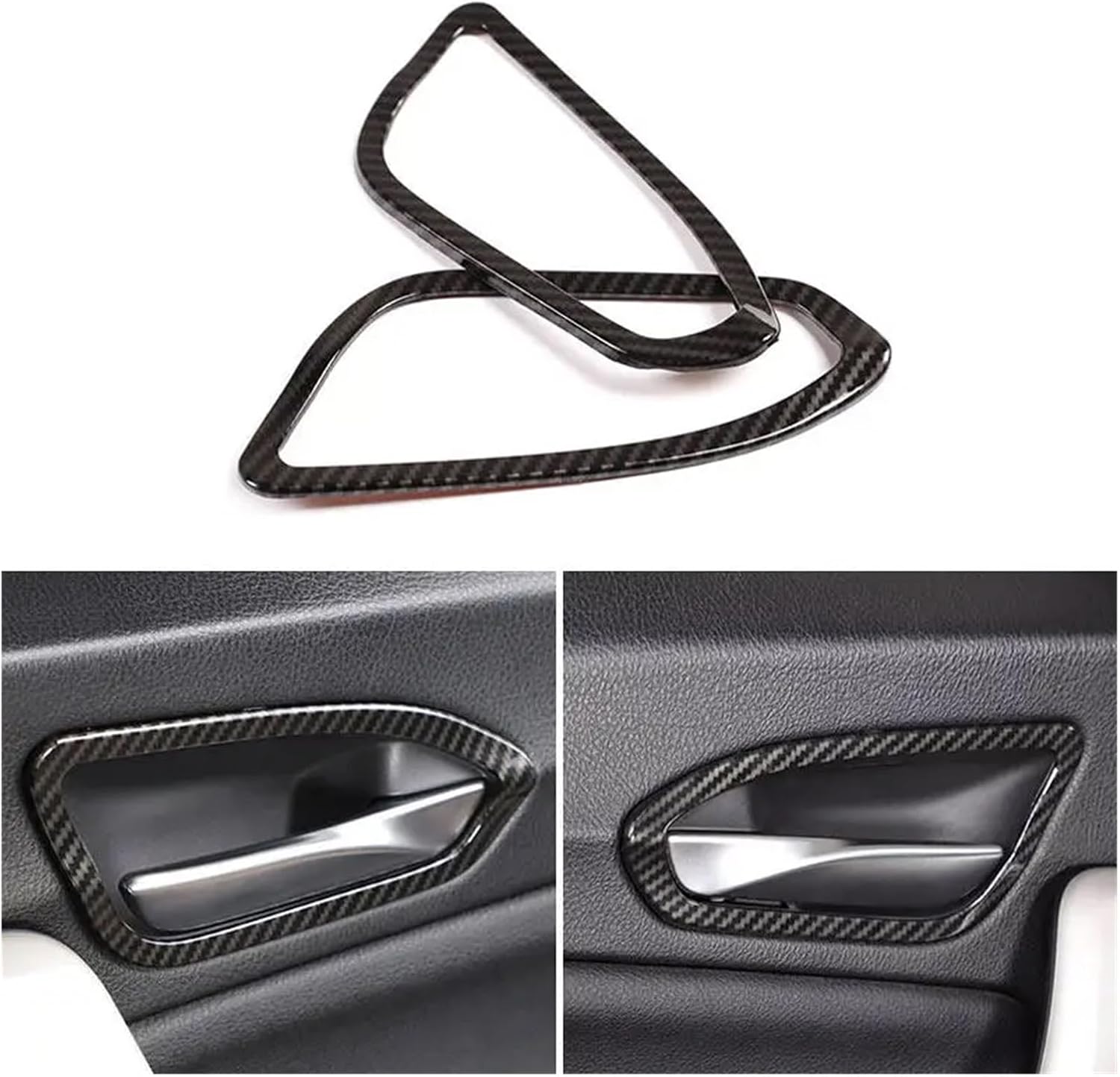 Car Inner Handle Frame Trim For 1 2 Series F20 F21 F22 F23SpecificationsMaterial: ABSColor: Carbon Fiber TexturePackage Included : 2pcsFitment: For 1 2 Series F20 F21 F22 F23 2012-2018Notice: For reference,please compare with your original one before orderDescriptionFeatures:- Come with adhesive, Easy to install and fits well.- Anti-scratch edge will not hurt your hands.- Correct Connector No cutting or splicing.- It is a cover only.- Strict quality control standards to Build and test.Attention:Please kindly check the item description and photos to make sure it suitable for your car before ordering.Due to / and screen difference, the item's color may be slightly different from the pictures.Adhesive tape is on the back. Please note that you may use hair dryer to warm up the adhesive tape before install to make the item stick tightly. (No need to be too hot)Installation Step:1.Make sure to clean and dry the install location.2.Carefully test / the piece in the install location.3.Carefully tear off the glue sticker, May use the hair dryer to warm up the adhesive tape before install. 4.Fixed position carefully, stick from one side. press firmly three minutes.5.Don't expose to strong sunlight or water within 48 hours.6.Because of the cold weather in winter, the adhesive will reduce the viscosity, pls try to paste in a warm house. 7.You may go to professional automotive shop for install.Item Weight : 50g
