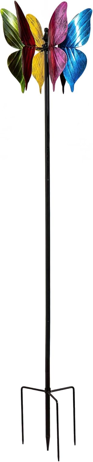 This Wind Spinner is perfect for adding color and whimsy to any outdoor space, garden, landscaping and more. The spinner is designed for movement when the wind blows; sit back and watch as the design comes to life in any gentle breeze. Its colorful butterfly design is an easy way to bring charm to any home. Made of durable, weather-resistant material, this outdoor accent is made to last year after year.