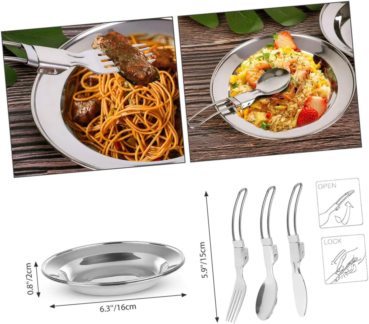 Package List 1 x Stockpot 1 x Pan 1 x Kettle 2 x Cups 2 x Trays 2 x Set knives forks and spoons 1 x Cleaning Sponge 1 x Cookware Mesh Bag 2 x Storage Bag (for Knives Forks, Spoons) Characteristics -Size: About 16.50X16.50X9.00cm/ 6.48X6.48X3.54in Outdoor Tableware. -Material: Aluminium alloy Cooking Tool Set. -Color: Black. - Frying pan 16.8x16.8x9cm, soup pot (including lid) 16.5x16.5x9cm, kettle 14X14X8CM, knives 16.8cm, folds to 10cm, spoon 16.7cm, folds to 9.5cm, fork 16cm, folds to 10cm. Cooking kit is designed for 1-2 people and comes with all your kitchen essentials, for camping, backpacking, picnics and other outdoor activities Outdoor Cooking Set. - It's a time-saving cooking kit with a durable pot that not only resists high temperatures, but also quickly transfers heat to deep fry and cook food in a short time Camping Cookware Set. - Insulated plastic handles prevent burns from the heat. The anti-skid design of the handle can provide a firm and comfortable grip for your hand Portable Teapot for Camping.Goods DescriptionOutdoor Tableware The anti-skid design of the handle can provide a firm and comfortable grip for your hand.Portable Teapot for Camping Insulated plastic handles prevent burns from the heat.Outdoor Cookware The stockpot and frying pans are made of anodized aluminum alloy, and the bowls and spoons are made of food-grade materials.Cooking Pot for Outdoor This is a set of outdoor cookware. All appliances are and healthy to your body