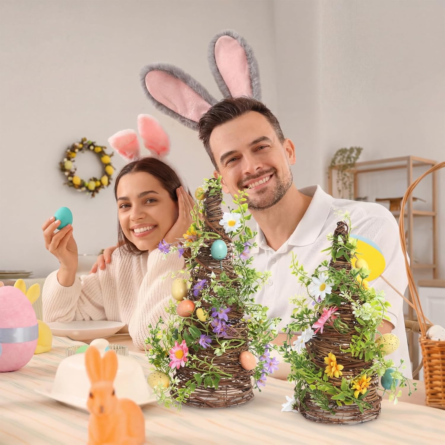 Features: Featuring timeless Easter colors and motifs, this decorative piece radiates authentic holiday spirit with vivid, lifelike details. An ideal present for Easter celebrations and family gatherings, this decorative table Easter tree is versatile and easy to display. Specifications: Material: rattan, iron wire Color: easter color Size: Big Easter rattan table tree: about 15.98 x 5.91 x 5.91 inches/ 40.6 x 15 x 15 cm Small Easter rattan table tree: about 12.2 x 4.33 x 4.33 inches/ 31 x 11 x 11 cm Package includes: 2 x Easter Rattan Table Tree Notes: Manual measurement, please allow slight errors on size. The color may exist a slight difference due to different screen displays