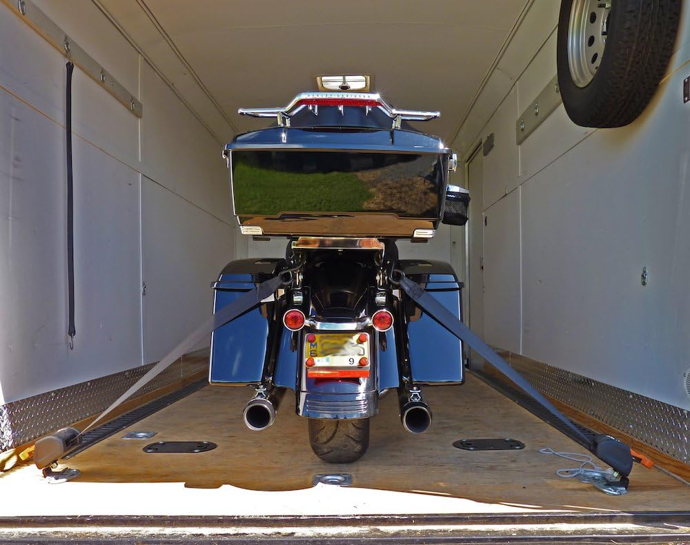 The BK1000 Deluxe Wheel Chock Combo Kit is the most trusted and secure trailering system for all sizes of motorcycles from cruisers to dirtbikes. Security and stability start with the steel wheel chock that automatically closes the front wheel securely in place. Apply the front tie-down for the ultimate stable ride for your bike. Then double up your stability by using the rear tire ratcheting tie-downs to lock the rear tire into place. By using this Combo Kit, you can ensure your bike will remain secure through potholes, gravel roads, and speed bumps.