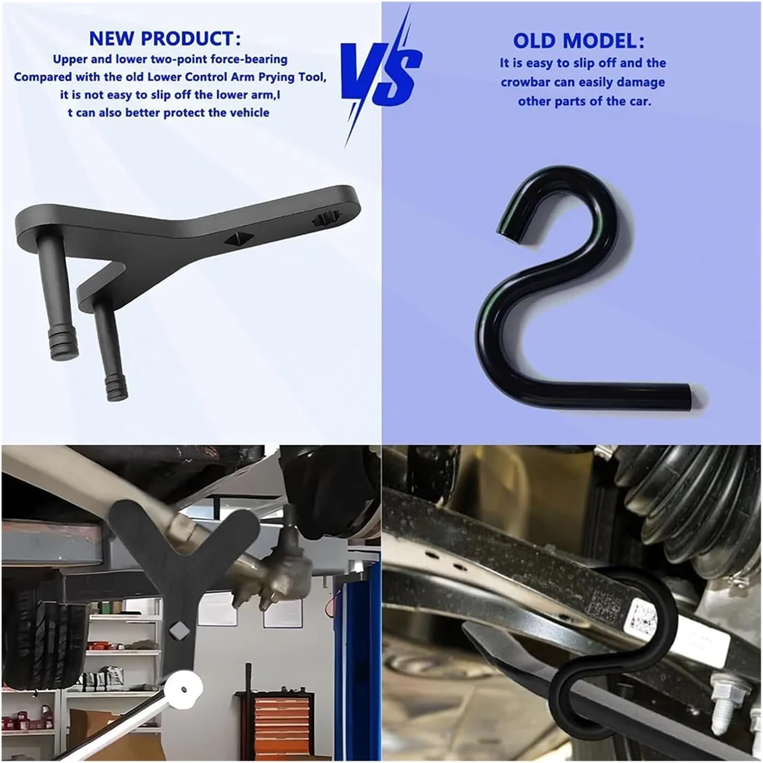 Lower Control Arm Prying Tool Suspension Bushing Tool Lower Ball Joint Pry Removal Tool work with 1/2" Extension Bar.Aids in getting ball-joints free from knuckles, adjustable position pulling arm allows you to position the tool where needed.Applicable Compatible With most front-wheel drive vehicles, import cars, domestic vehicles, and minivans.The lower control arm prying tool is Compatible With 1/2" Drive Extension Breaker Bar and can withstand tremendous pressure without deforming.Easy to use and will not damage other parts of the car in the process of repair. It adopts upper and lower two-point force-bearing. Compared with the old Lower Control Arm Prying Tool, it is not easy to slip off the lower arm.Forged by Alloy steel, Rugged and durable. Can withstand 3500 N..Origin : Mainland China.