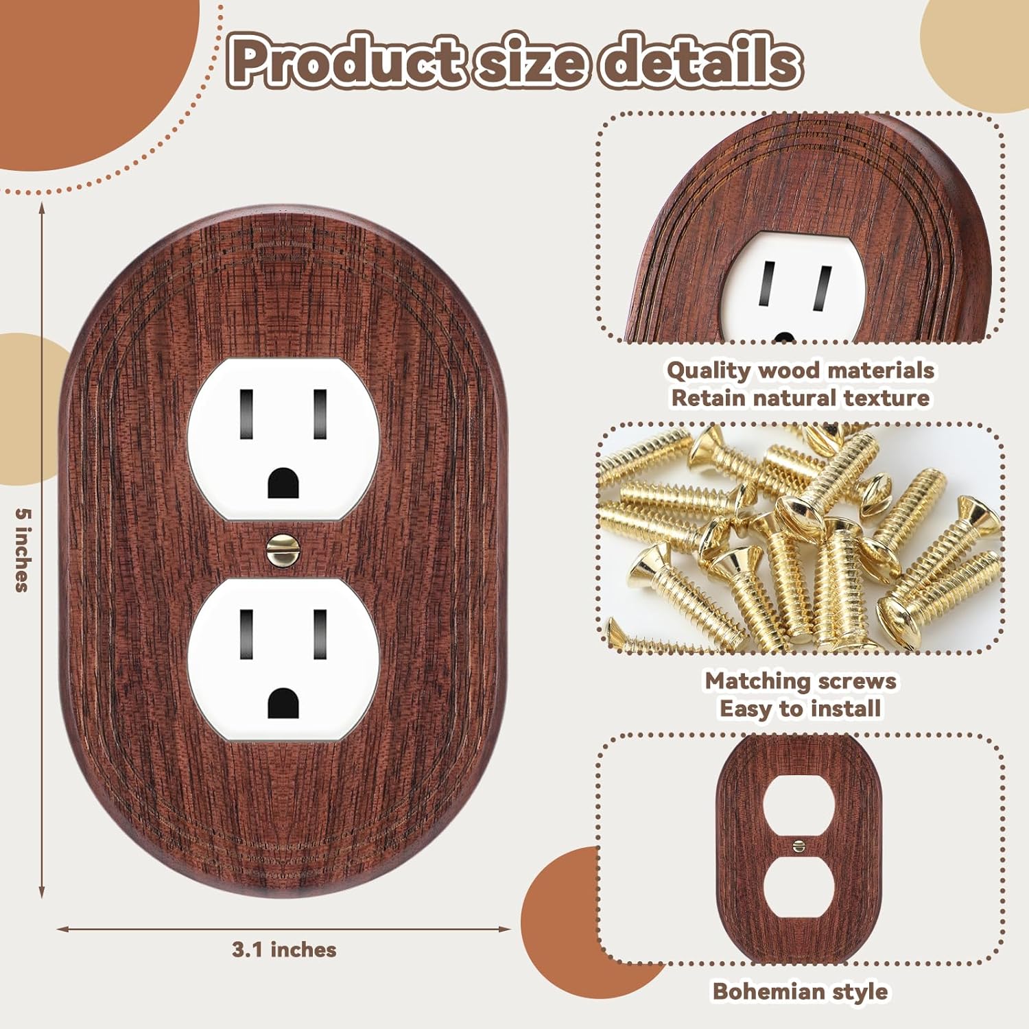 | Included Components | 10 x Screws, 10 x Wood outlet covers |