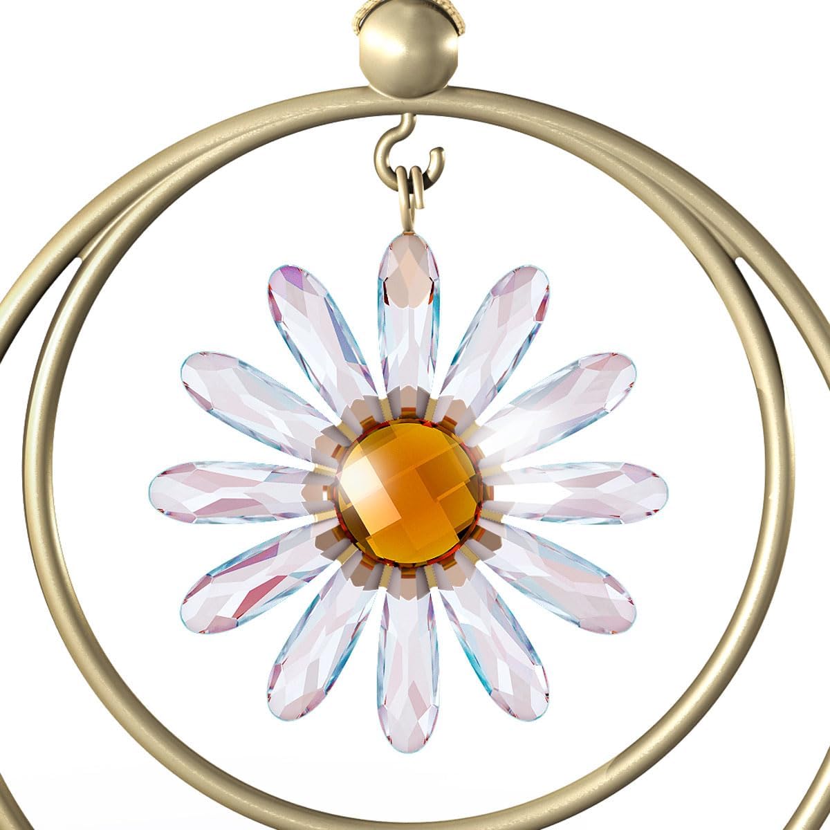 An elegant and cheerful addition to your home, this stunning ornament takes its cues from contemporary minimalist décor. Its sleek silhouette, crafted in brushed champagne-gold tone plated metal, features a daisy as its centerpiece, shining joyfully with 262 expertly-cut facets of shimmering clear and yellow crystal. Using the gold-tone ribbon, hang in a window to catch the light or remove the detachable flower and display it elsewhere. Perfect for gifting. Decoration object. Pink Shade, Not a toy. Not suitable for children under 15.