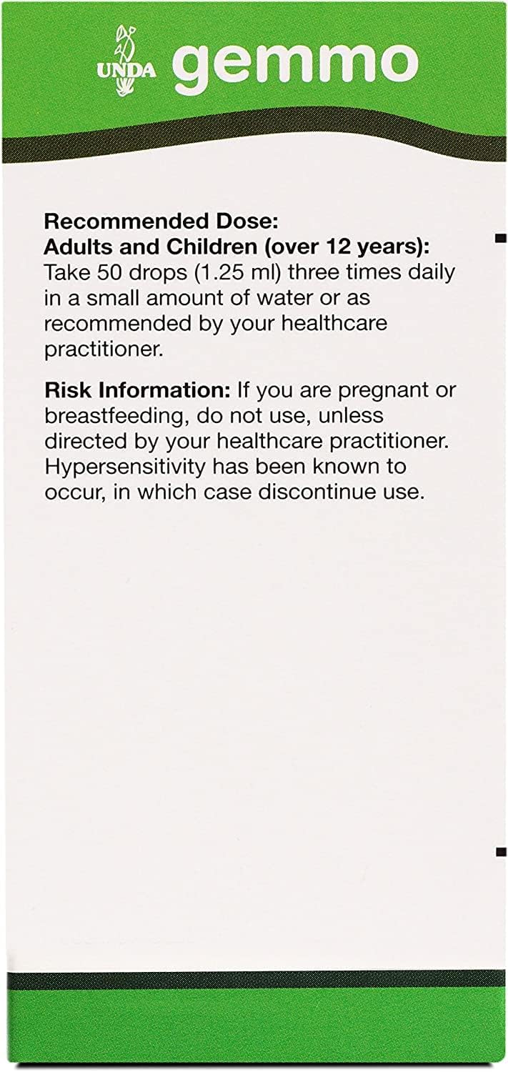 Gemmotherapy uses the extracts of fresh buds, young shoots, rootlets, or saps from developing plants, where the plants life essence is at its peak in the young growths. UNDA Gemmotherapy remedies are prepared in a natural glycerin and organic ethanol medium, which is then filtered and potentized at a 1/10th dilution (1X Hahnemannian) in a pure water, natural glycerin and organic ethanol medium. These complex remedies are macerated.This methodology captures the most complete set of highly-concentrated active constituents necessary for tissue regeneration, favourable growth development and essential drainage properties. UNDA Gemmotherapy facilitates Biotherapeutic Drainage and is an excellent adjunct to the UNDA Numbered Compounds.Established over half a century ago in Belgium, UNDA is renowned for manufacturing exceptional homeopathic products utilized in supporting immune, lymphatic and endocrine systems. In the production of all homeopathic remedies UNDA uses only pure materials and herbs that are biodynamically grown or wildcrafted. UNDA produces a broad range of homeopathic products in various potencies including: the unique Numbered Compounds, Gemmotherapy macerates, Schuessler Tissue Salts, Gammadyn Oligo-Elements, Organotherapy, Plexes, creams and oils, as well as homeopathic compatible dental care.