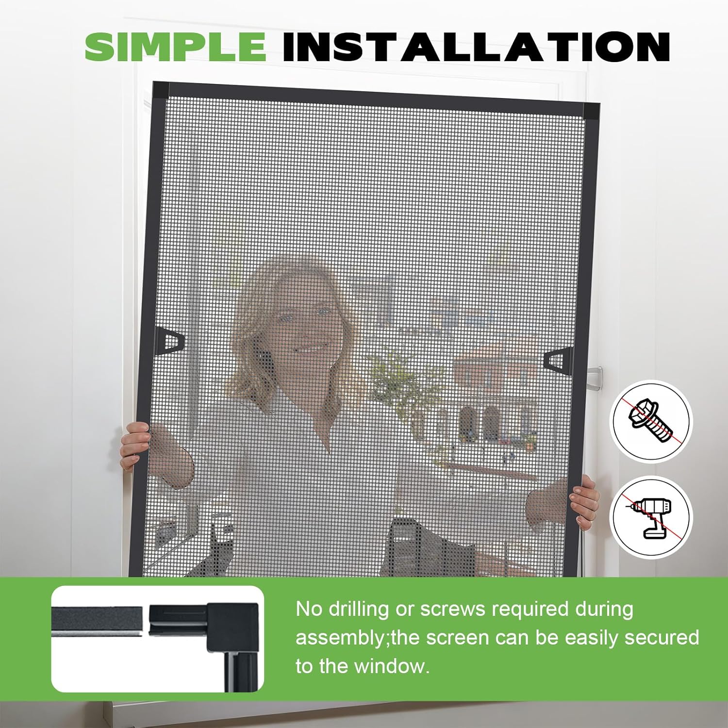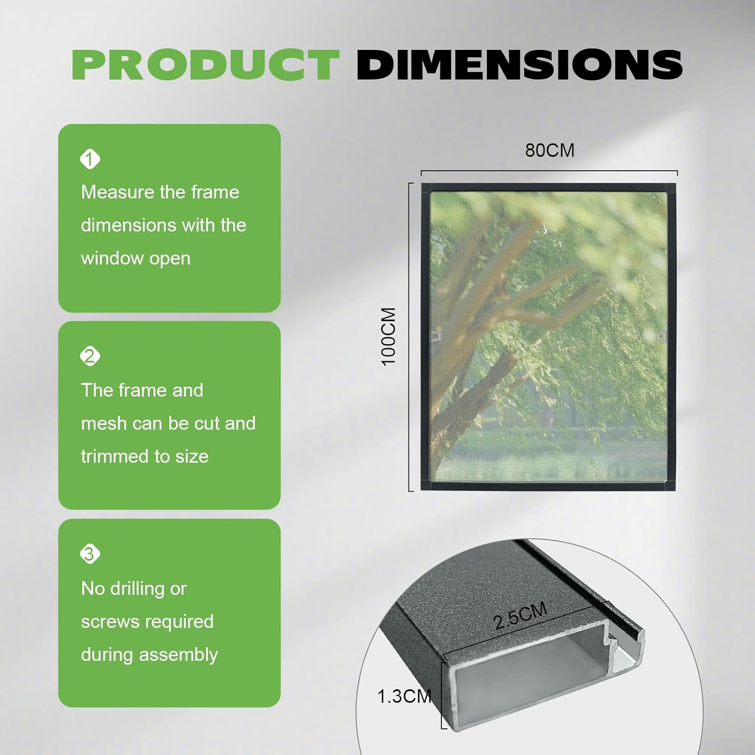 This aluminium fly screen is designed for families who value comfort, peace and a safe living experience. It creates the ideal balance between reliable insect protection and pleasant everyday comfort. The insect protection for windows sturdy aluminium frame is available in white or anthracite and impresses with clean lines that blend harmoniously into different living styles. Thanks to several common sizes, the fly screen can be used flexibly - with special window dimensions, it can be easily cut to size for a perfect and relaxed installation. The window insect protection with frame reinforced aluminium frame in combination with the durable fibreglass fabric ensures good visibility and effectively keeps mosquitoes and other insects away. At the same time, fine dust is reduced, which contributes to a more pleasant indoor climate. Even with prolonged use and changing weather conditions, the construction remains stable and dimensionally stable. The fly screen with frame window drill-free installation protects the window frame from damage and is particularly suitable for rented apartments or households that do not want permanent changes. Whether in the bedroom, living room or kitchen, this fly screen allows fresh air and daylight without sacrificing protection. So you can open your windows worry-free and enjoy a quiet, clean and relaxed living atmosphere. Product parameters: Aluminium frame colour: white / anthracite. Sizes: 80 x 100 cm / 100 x 120 cm / 120 x 140 cm. Frame dimensions: approx. 2.5 cm wide, approx. 0.5 inch thick Frame material: aluminium alloy. Mesh material: fiberglass Net colour: grey. Piping seal: nylon. Package includes: 1 x aluminium fly screen